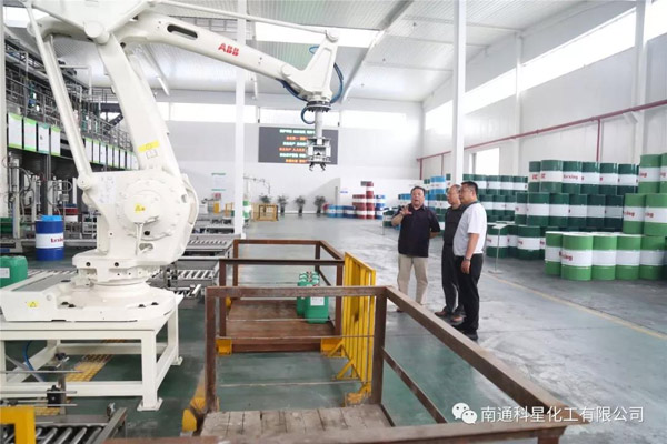 6月28日,山推工程機械股份有限公司生產采購中心主管劉磊先生一行來到南通科星化工有限公司進行實地參觀考察,科星公司總經理傅士超先生全程陪同。