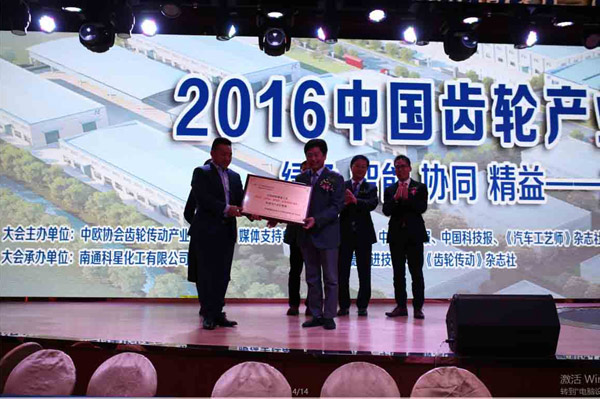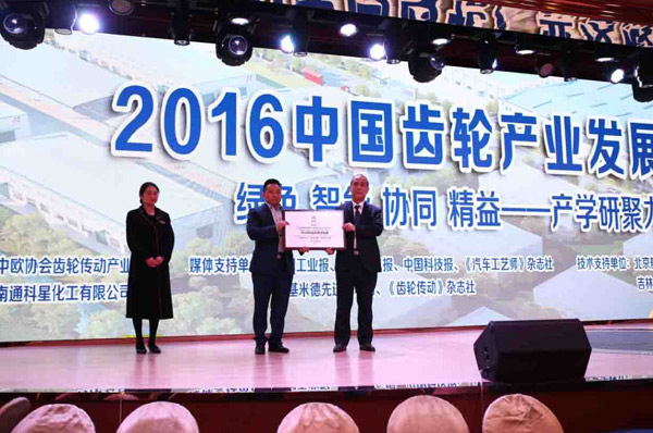 2016年11月23日,在“2016中國齒輪產業發展高峰會議”上,公司被中歐齒輪協會授予“中國綠色制造工藝科研與產業化基地”的稱號。