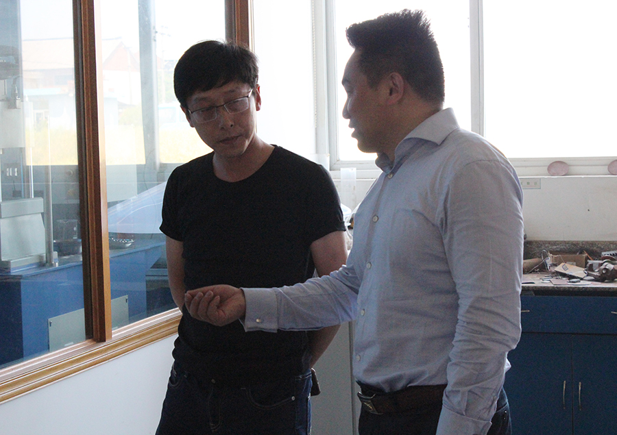 總經理傅士超陪同參觀化驗室,與孔令佐總經理、陶太鎖副總經理介紹了我司的研發、質檢等工作情況。