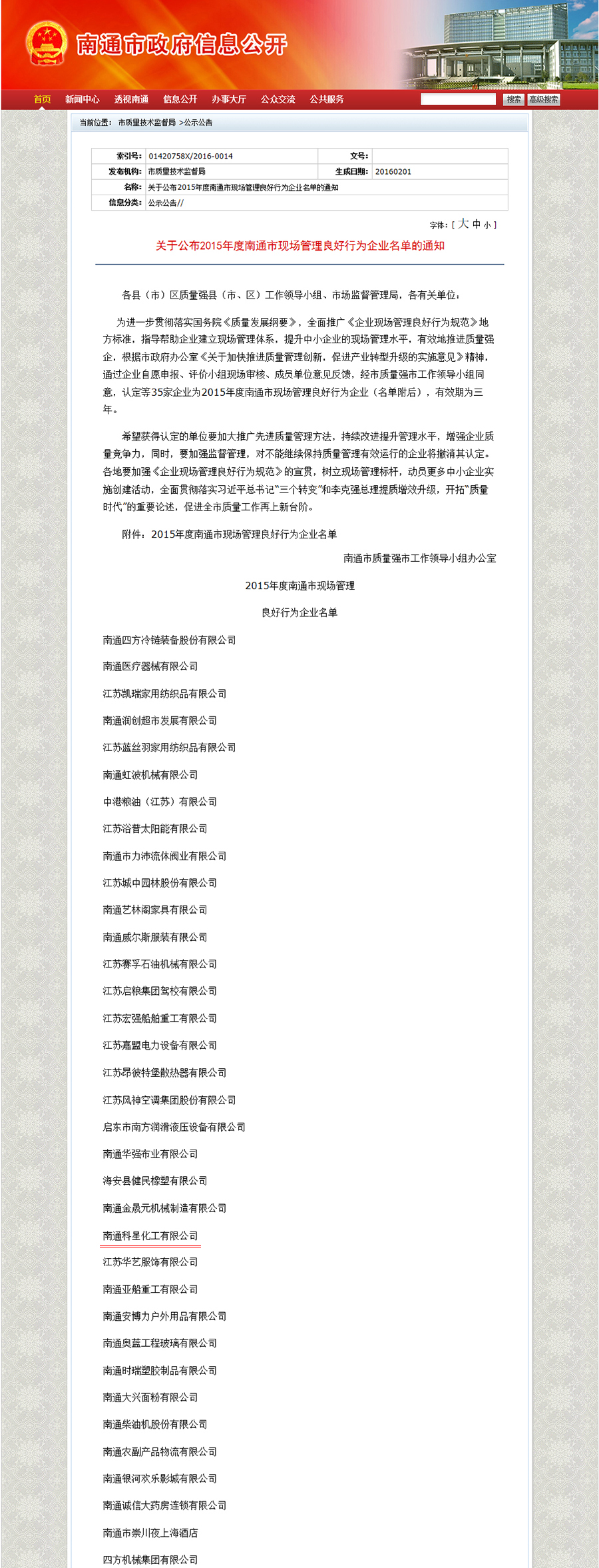 2015年度南通市現(xiàn)場管理良好行為企業(yè)