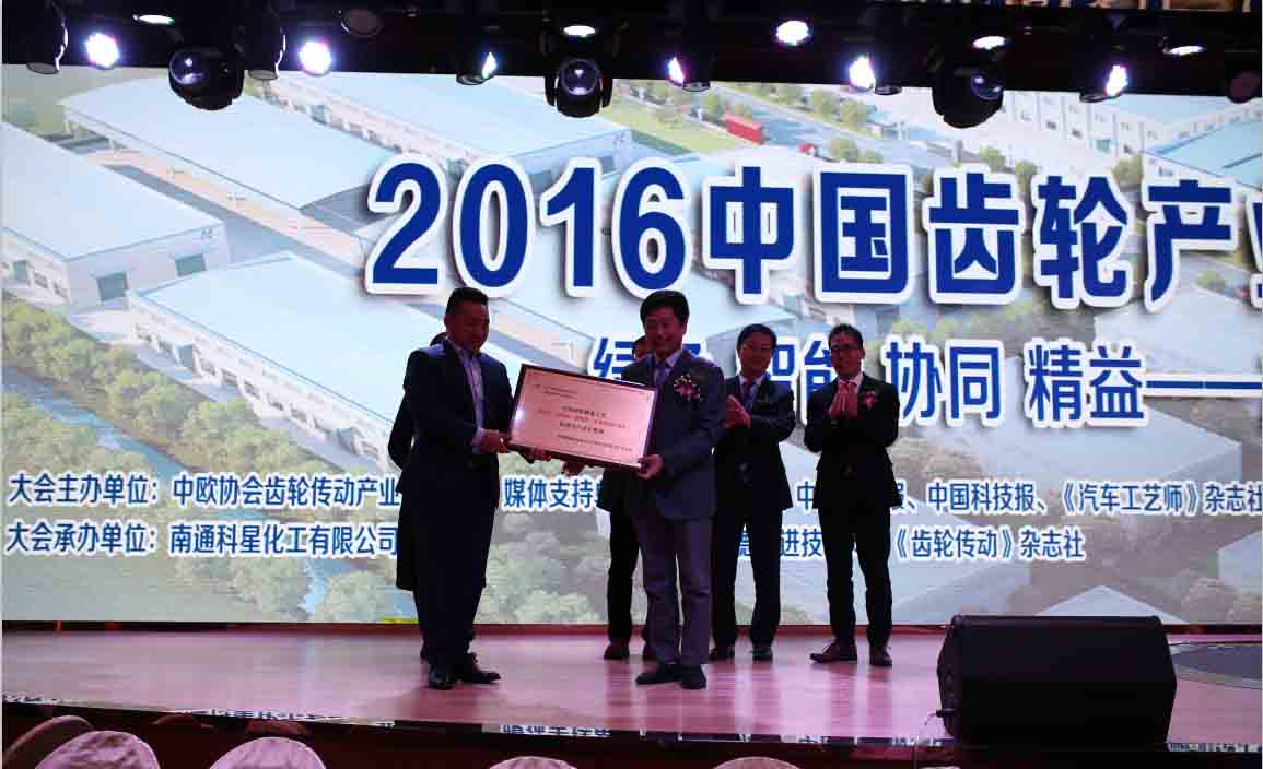 2016年11月23日,在“2016中國齒輪產業發展高峰會議”上,公司被中歐齒輪協會授予“中國綠色制造工藝科研與產業化基地”的稱號。