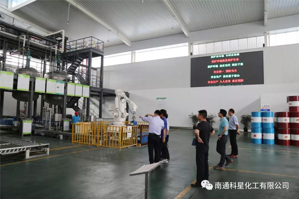 在談到整改成效時,公司董事長吳龍鐵介紹說:過去物料添加、成品液灌裝全靠人工,人工操作誤差較大,生產中跑冒滴漏現象嚴重,不僅浪費,而且現場環境受到污染。升級改造后從原料進反應釜到成品灌裝出廠,全部在密封的生產管網中進行,全程電腦控制,智能化生產,不僅現場生產環境得到徹底改變,而且生產成本直接下降15%-20%,過去50名工人的生產量現在只需8名工人來完成,并且產品投料配比精確度高,成品液性能穩定并且質量大幅提高。三一重工、中聯重科、時風集團、江西五十鈴等用戶在使用后普遍反應良好。3月份,中國時風集團總裁劉成強參觀科星化工后,認為目前國內生產金屬加工液行業中,科星化工的智能化水平已走在前列。6月份,在中國中車集團和浙江五洲新春集團的公開招標會上,科星化工成功中標,這是客戶對我們的認可,也是這次全省263專項行動中,科星化工積極整改、提高整體工藝水平所取得成效。