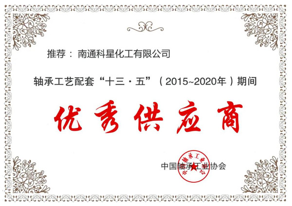 南通科星化工有限公司喜獲中國軸承工業(yè)協(xié)會“工藝配套優(yōu)秀供應商”稱號