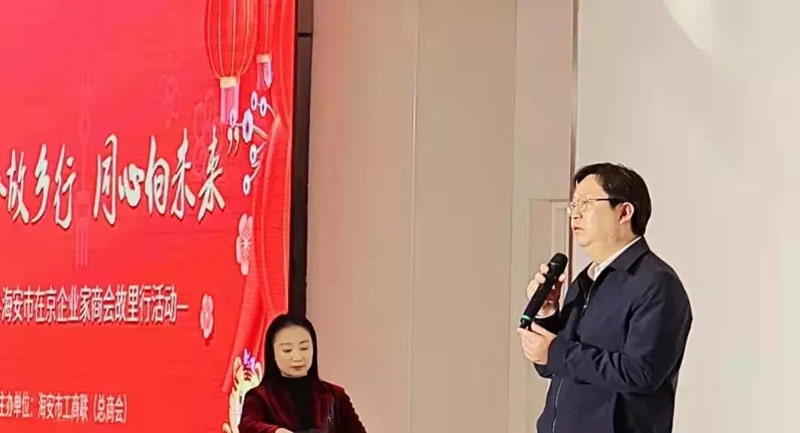 2022年2月4日大年正月初四,海安市工商聯(lián)攜手海安市在京企業(yè)家商會(huì)舉辦“新春故鄉(xiāng)行,同心向未來”主題活動(dòng),市領(lǐng)導(dǎo)譚真、張明星、盧忠平、趙劍波、夏衛(wèi)軍、彭為杰、蔡祝平及市委統(tǒng)戰(zhàn)部、市工商聯(lián)、市工經(jīng)聯(lián)、大公鎮(zhèn)等單位負(fù)責(zé)人和海安籍在京企業(yè)家近80人參加活動(dòng),江蘇科星新材料有限公司暨南通科星化工股份有限公司董事長吳龍鐵參與了此次活動(dòng)。