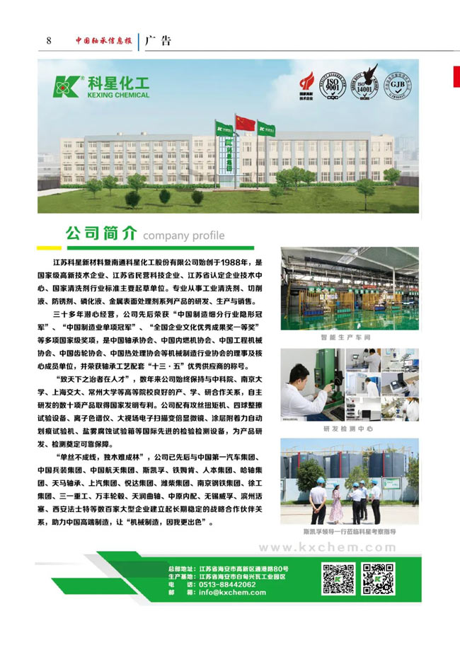 中國軸承信息報2022年第4期節(jié)選轉(zhuǎn)載,科星化工詳見第八頁。
