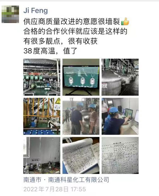 座談會之后,麥格納考察團一行對科星的生產車間、中控室、倉庫等現場進行了查看,進一步加深了對科星生產流程、作業現場等方面的了解,科星相關部門負責人就考察團提出的安全評估、環境監測及6S管理問題進行了現場解疑答惑。
