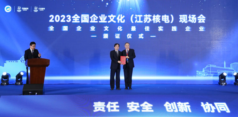 本次現(xiàn)場會由中國企業(yè)聯(lián)合會、中國企業(yè)家協(xié)會主辦,中國核能電力股份有限公司承辦,江蘇核電有限公司協(xié)辦。會場近百名來自全國各地的企業(yè)文化領(lǐng)域?qū)<覍W者和嘉賓共同見證江蘇核電有限公司摘獲“全國企業(yè)文化最佳實踐企業(yè)”稱號。
