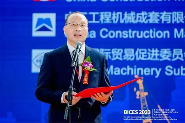 中國(guó)工程機(jī)械工業(yè)協(xié)會(huì)會(huì)長(zhǎng)蘇子孟代表主辦單位致辭