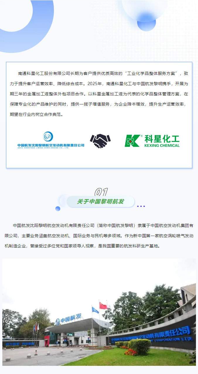 南通科星與中國航發黎明開展為期三年的切削液整體外包項目合作