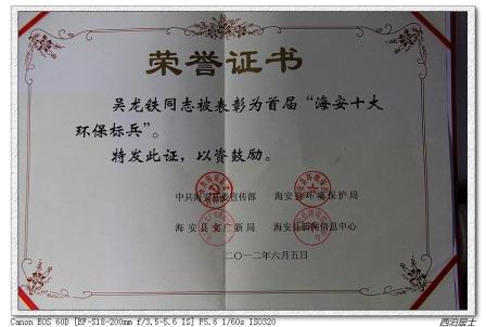 吳總被評為“海安十大環保標兵”