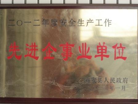 公司緊緊圍繞“安全生產第一”的理念,安全生產常抓不懈,建廠以來為零事故。2012年度被海安縣人民政府授予安全生產“先進企事業單位”。